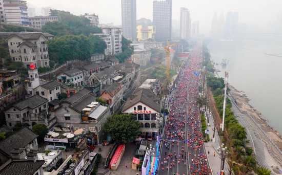 3月2日,2025重庆马拉松在重庆市南岸区南滨路海棠烟雨公园鸣枪开跑。新华社记者 刘潺 摄