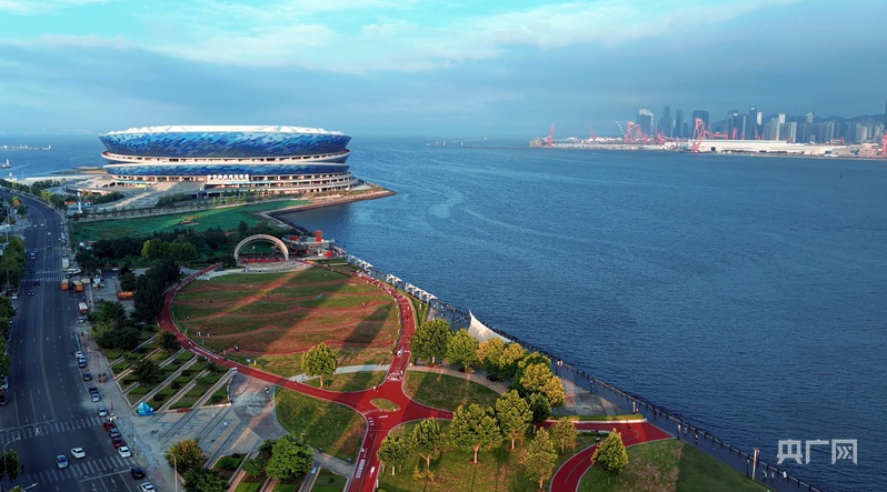 俯瞰梭鱼湾滨海体育公园(央广网发 甘井子区委宣传部供图)