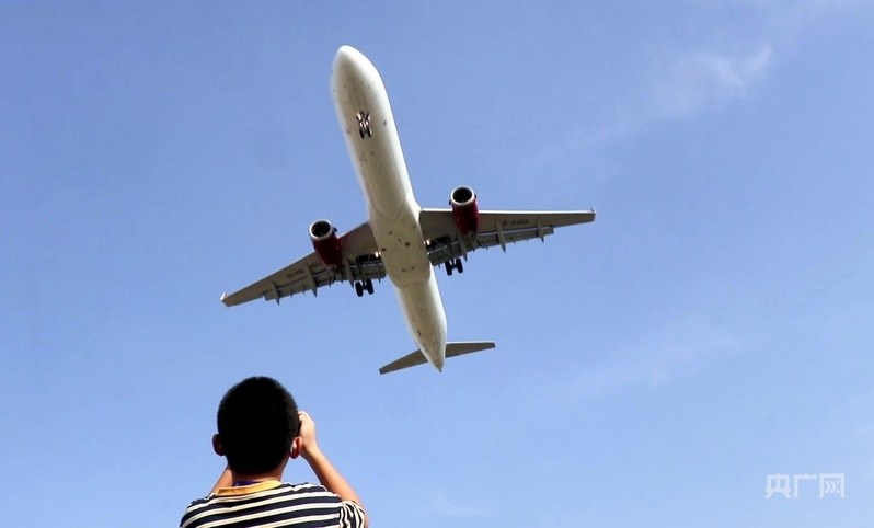 游客与飞机同框(央广网记者 刘培俊 摄)